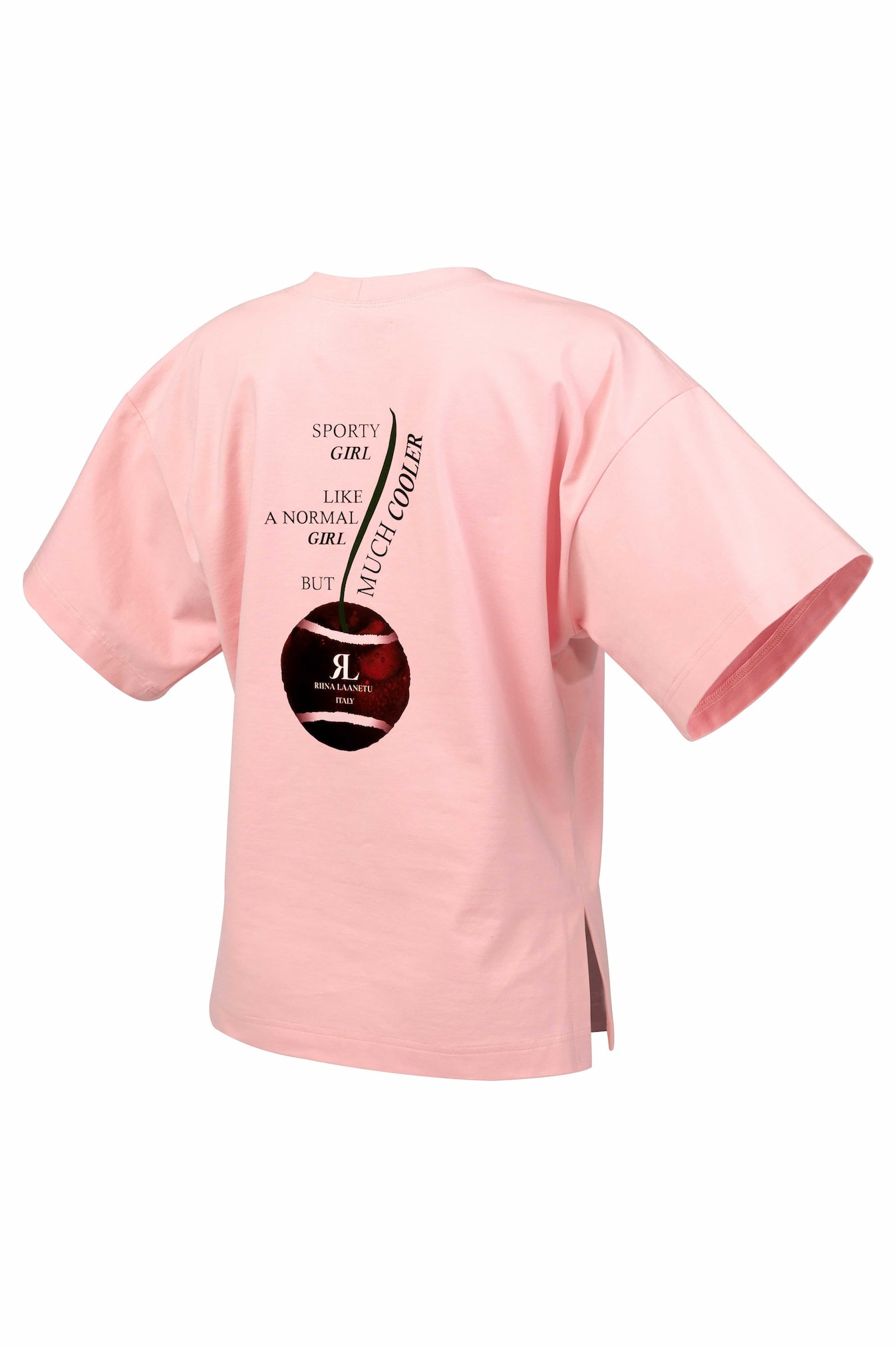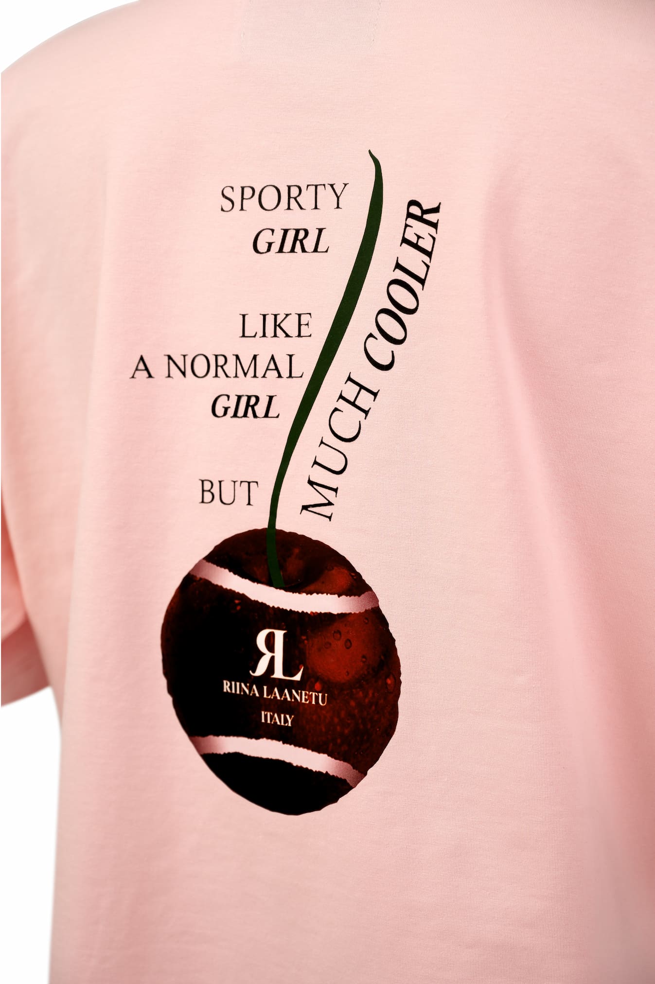 Disainil on seljal ainulaadne kirsimustriline graafika ja loosung „Sportlik tüdruk. Nagu tavaline tüdruk, aga palju lahedam.“, mis lisab mängulise ja enesekindla puudutuse.